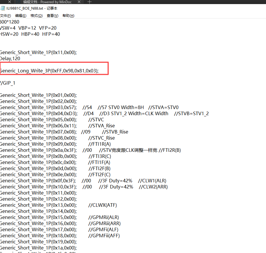 1.根据规格书配置屏参